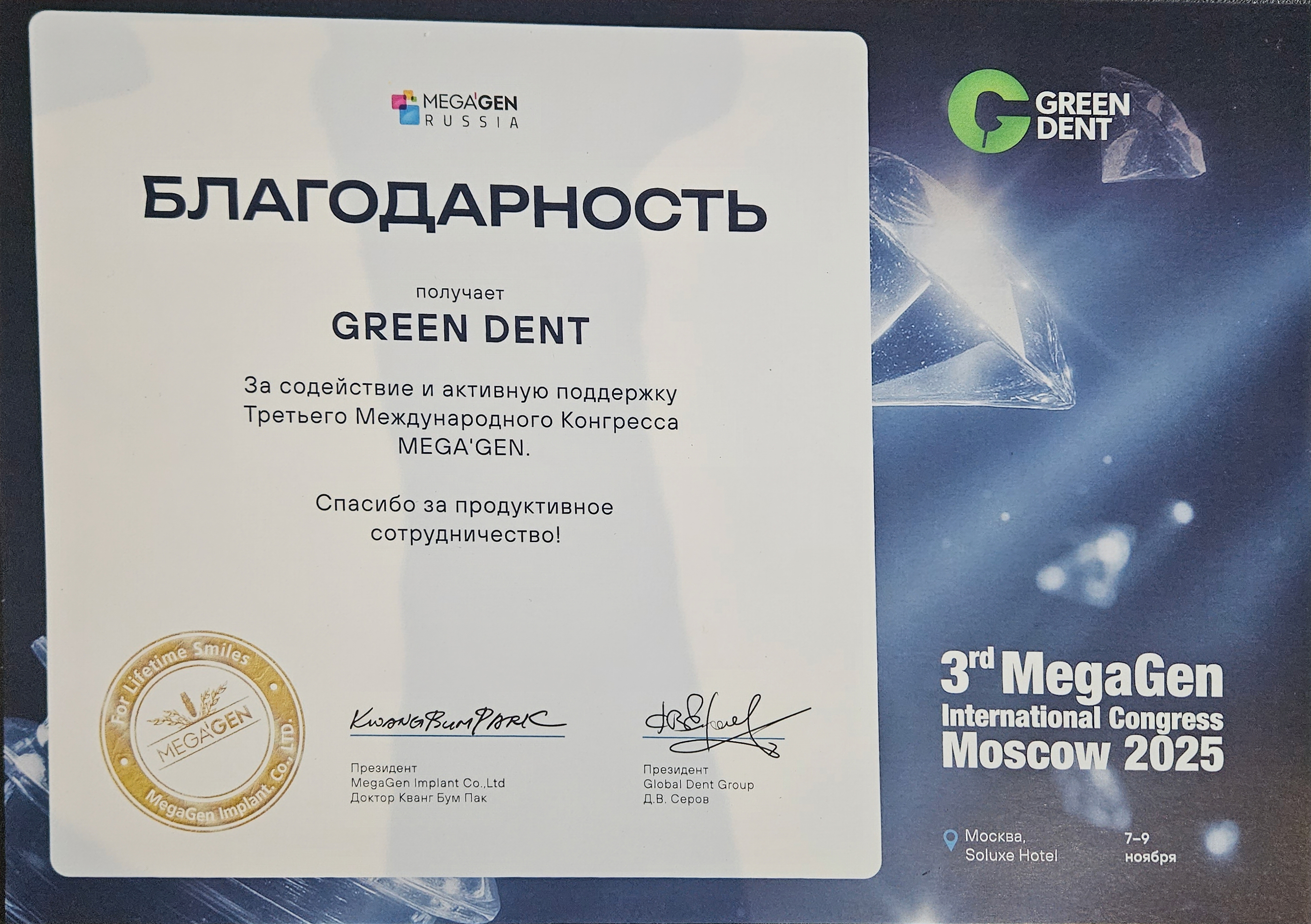 Компания MVK настоящим удостоверяет, что компания GREEN DENT